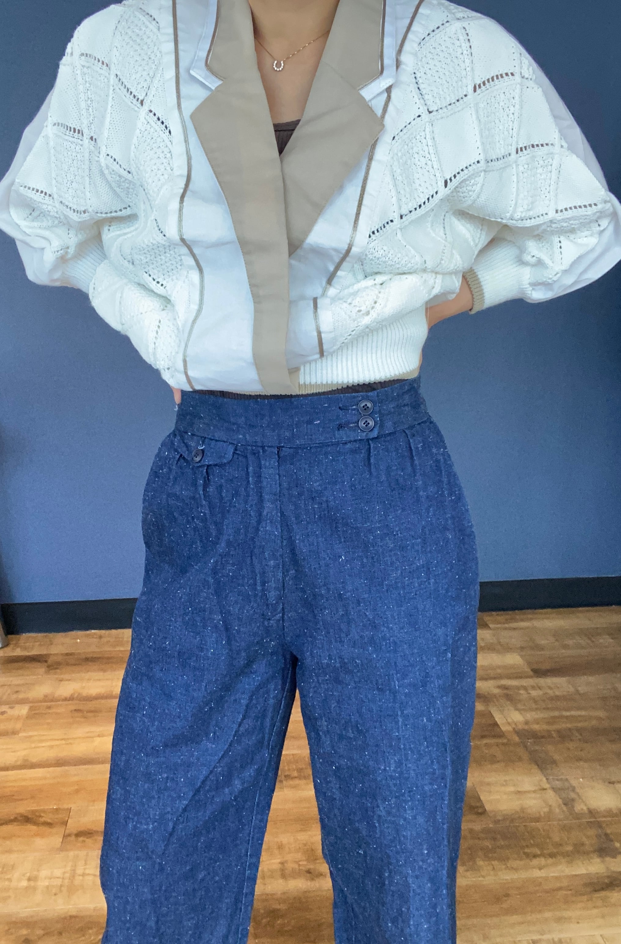 布帛とコットンニットの切り替えが珍しいプルオーバーです。
